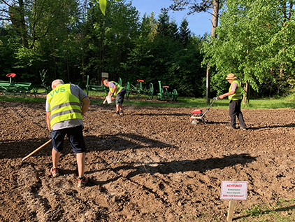 Fleißige Helfer bei der Vorbereitung des Blumenwiesenfeldes im Bicester-Park. |