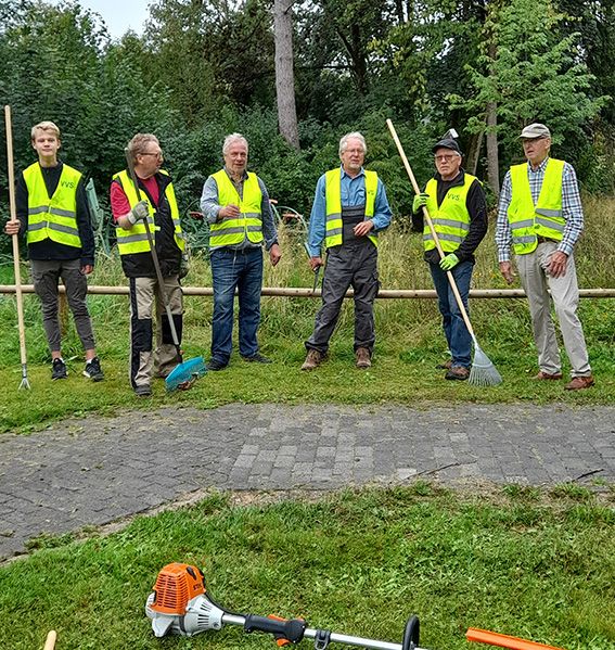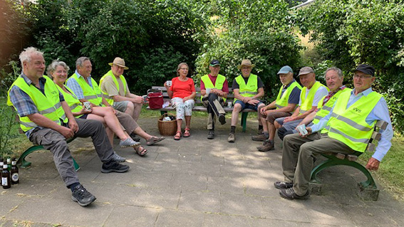 Die fleißigen Helfer*innen des VVS bei einer wohlverdienten Pause nach getaner Arbeit im Bicesterpark! (Foto: Hans-Peter Krieger) |