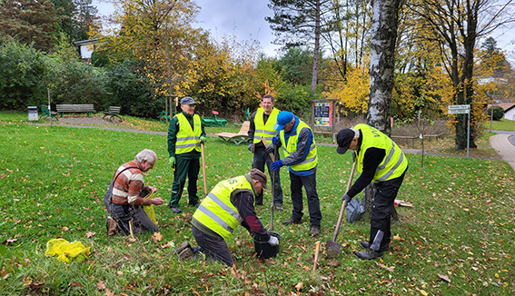 Der Seelscheider Verschönerungsverein hat am verregneten 11.11.2017 vormittags einen Wunsch vieler Bürger erfüllt, indem er mit seinen VVS-Helfern 1000 Narzissenzwiebeln in einem Randstreifen des Bicester Parks in Seelscheid einpflanzte. Die Aktion war mit der Gemeindeverwaltung und dem Bauhof abgesprochen und wurde vom VVS finanziert. Wir sind nun gespannt, wie der Park im nächsten Frühjahr aussehen wird. Nach der Blüte kann dann die Wiese wie bisher abgemäht werden. Der Vorstand des VVS bedankt sich bei allen Beteiligten für das Gelingen.