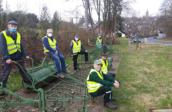 Der VVS hat für den diesjährigen Kreiswettbewerb die Bereiche Dorf und Berg Seelscheid angemeldet. Wir sind durch vielerlei Aktivitäten dazu ermuntert worden: Die Gemeinde hat den Wenigerbach freigelegt und die Ufer renaturiert. Die »Schusterjungen« haben zwei Wege und das Ehrenmal instand gesetzt und das Schusterhäuschen restauriert. Und der »VVS« kümmert sich um die Feinarbeiten am Bicester Park. So wurden am Samstag die landwirtschaftlichen Geräte mit Hochdruck gereinigt, die Wegesränder freigemacht und die Hütte samt Dach gesäubert. Das regelmäßige Mähen übernimmt dankenswerterweise die Gemeinde. |