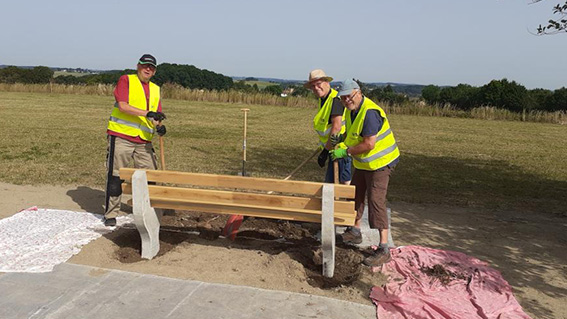 Durch die freundliche Unterstützung der ausführende Baufirma bei den Kanalbauarbeiten und in Zusammenarbeit mit der Tiefbauabteilung der Gemeinde wurde nun auch als Ersatz für die bisherige »Schachplatte« auf Anregung des »VVS« eine neue Bodenplatte angelegt. Auf dieser Bodenplatte hat der »VVS« ebenfalls auf eigene Kosten nun drei neue Ruhebänke aufgestellt. Die neue Ruhezone im Bicester Park liegt unmittelbar am viel begangenen Kräuterweg. In den nächsten Wochen, wenn die Baufirma endgültig abgezogen ist, werden dann noch die restlichen Arbeiten – wie die Grundreinigung der dort aufgestellten landwirtschaftlichen Geräte und auch sonstige Pflegearbeiten durchgeführt. |
